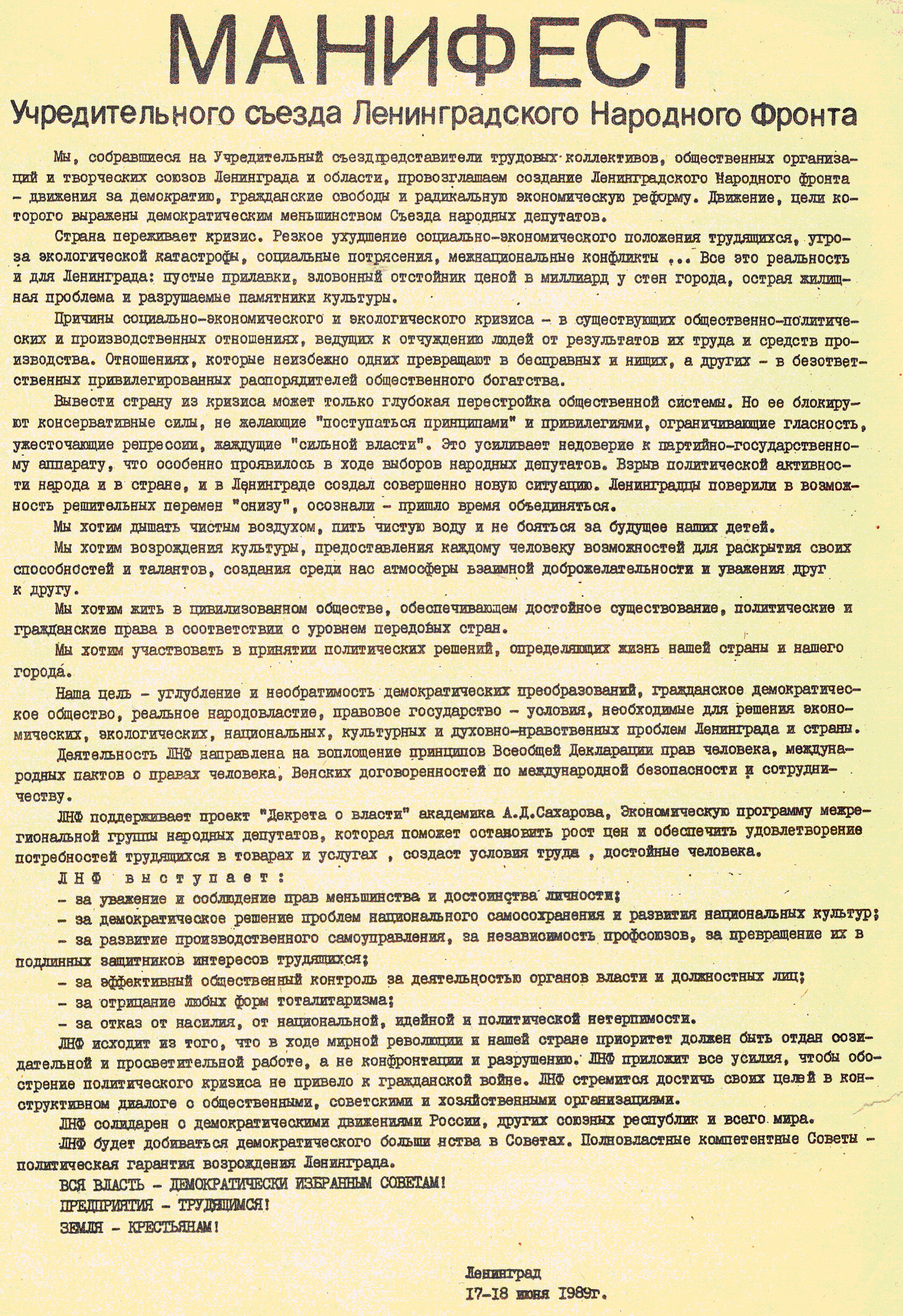 И уж если весной 1990 года в кулуарах и на трибунах органов власти замелькали «слоганы» о свободе, то реформы, запланированные командой М.С. Горбачёва, должны были приобретать радикальный и даже революционный характер. Об этом вспоминал на юбилейном (в честь 20‑летия со дня начала работы Ленсовета-21) собрании в 2010 году один из старейших депутатов Ленсовета, геолог, джазмен и ярый антикоммунист Георгий Сергеевич Васюточкин (фото на с. 21). Он закономерно сравнивает деятельность нашего Ленсовета-21 с работой революционных органов в 1917 году. Оказывается, Исполком Совета рабочих депутатов в марте-апреле 1917 года спекулировал исключительно на лозунгах «Свободы, свободы и ещё раз свободы!» и «Долой самодержавие!». Мы знаем теперь, что сами большевики вскоре превратились в самодержцев. Место у кормила власти пусто не бывает! И занимают это хлебное место по преимуществу субординаты, которым абстрактная свобода совершенно не нужна. Академик А.Н. Яковлев в своей брошюре о февральской (1917 года) революции пишет, что только «перестройка» (1985-1991) осуществила ликвидацию большевистского самодержавия, расчистила дорогу подобным Ленсовету демократическим органам для созидательной работы.