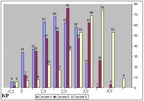 Таким образом, от сессии к сессии диапазон варьирования КР будет меняться в зависимости от количества учтенных «консервативных» голосований. При полном отсутствии «консервативных» голосований КР изменяется от «0» до «+5» (идеальный вариант). В реальной ситуации КР изменяется от отрицательных величин до значений, близких к +5.